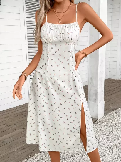 Dokuma Ayarlanabilir Askılı Beyaz Kısa Elbise