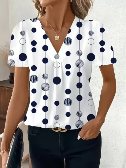 Kısa Kollu Nokta Desenli Beyaz Kadın Gömlek