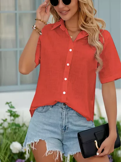 Kısa Kollu Düz Günlük Kullanım İçin Kırmızı...