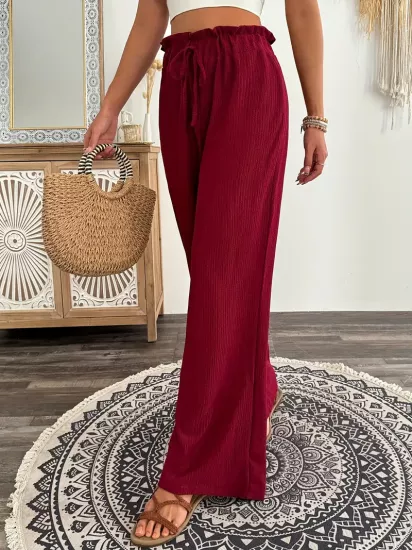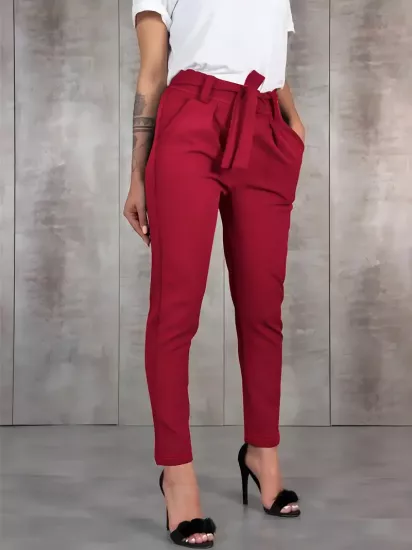 Yüksek Bel Esnek Kumaş Bol Kesim Kırmızı Kadın...