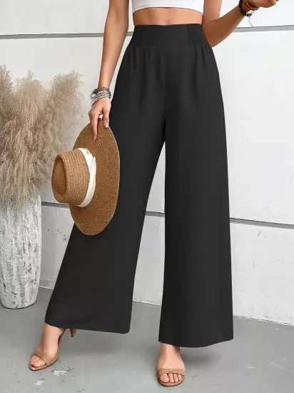 Yüksek Bel Esnek Kumaş Bol Kesim Siyah Kadın...