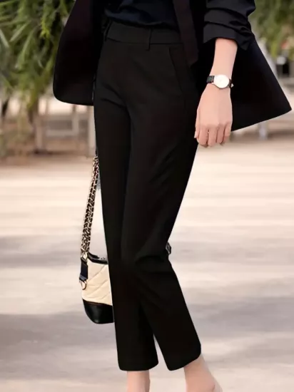 Yüksek Bel Esnek Kumaş Dar Kesim Siyah Kadın...