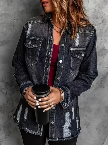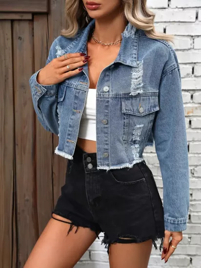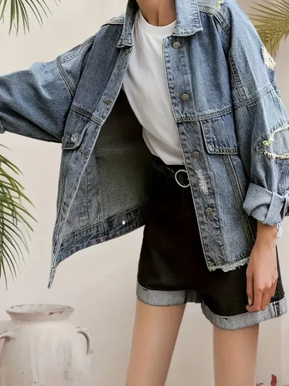 Klasik Şehirli Tarzda Günlük Kullanım İçin Mavi Kadın Jean Ceket